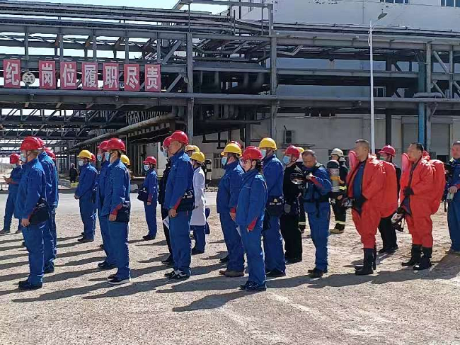 定期邀請邀請職業(yè)衛(wèi)生專家講解《職業(yè)病防治法》等相關(guān)法律法規(guī),同時(shí)組織專家與參加培訓(xùn)人員進(jìn)行交流座談,逐一解答參訓(xùn)人員提出的問題。現(xiàn)場培訓(xùn)結(jié)束后,公司組織全體員工通過線上學(xué)習(xí)平臺“酷學(xué)院”對講座內(nèi)容進(jìn)行學(xué)習(xí),組織開展全員職業(yè)健康知識考試,進(jìn)一步增強(qiáng)全員職業(yè)病防治法律意識和職業(yè)健康知識,提高職工自我防護(hù)意識。2022年上半年組織開展液氯泄漏中毒事故、窒息事故、疫情防控等專項(xiàng)應(yīng)急演練,通過開展應(yīng)急演練使員工熟練掌握應(yīng)急處置流程、應(yīng)急防護(hù)器材和緊急救護(hù)方法,不斷提高崗位人員應(yīng)急處置技能。