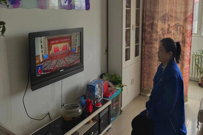 員工在家中收看黨的二十大開幕會(三)